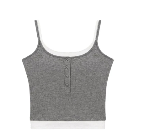 假兩件U領排扣半開襟細肩帶 BRA背心