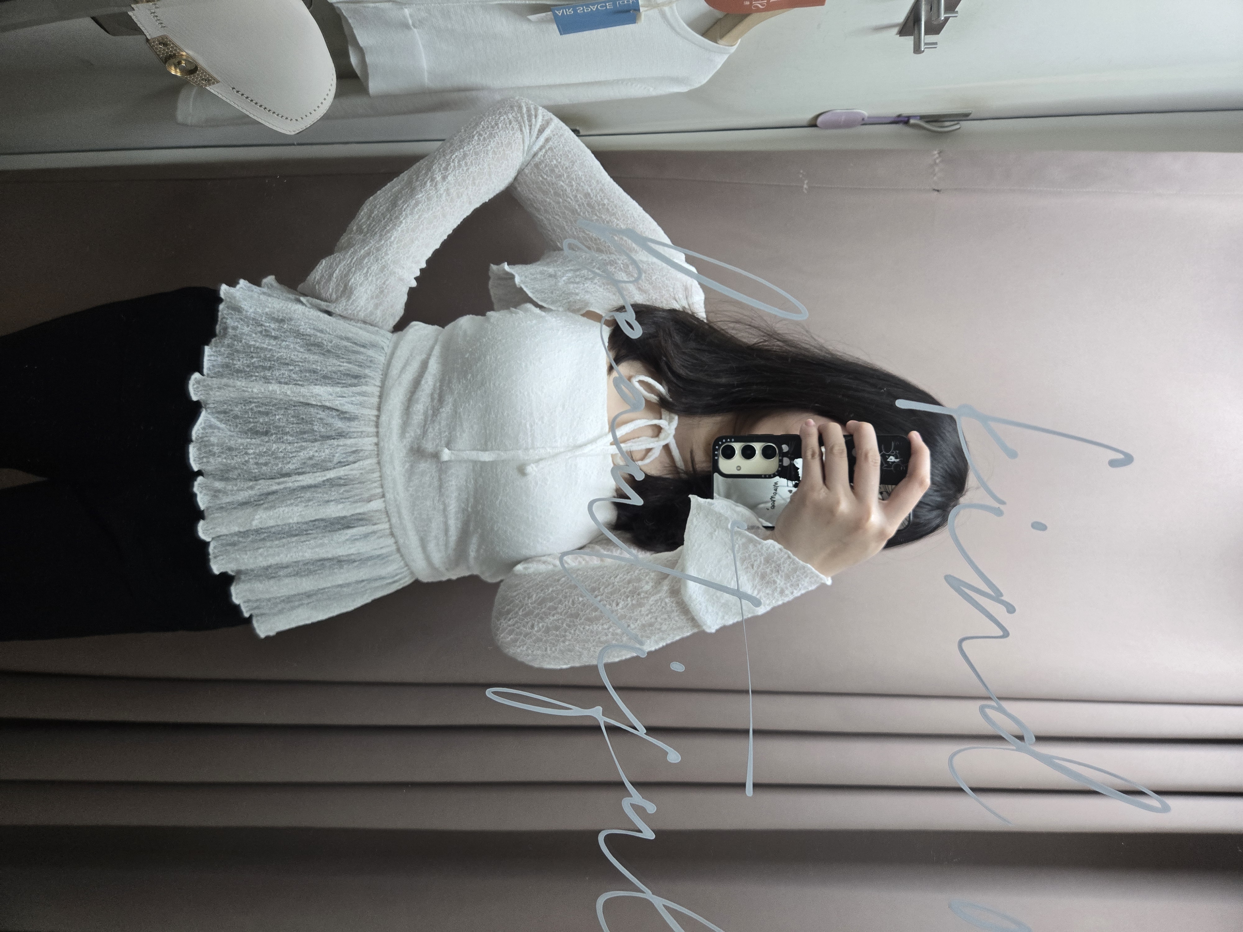 透膚的綁帶蕾絲罩衫與荷葉下擺背心的組合,疊搭出豐富的視覺層次。合身不緊貼的版型讓身形比例顯得纖瘦修長,並多了一些柔和感。內附可拆式胸墊,隨需求靈活使用,非常方便。是一款日常甜感穿搭必備單品。