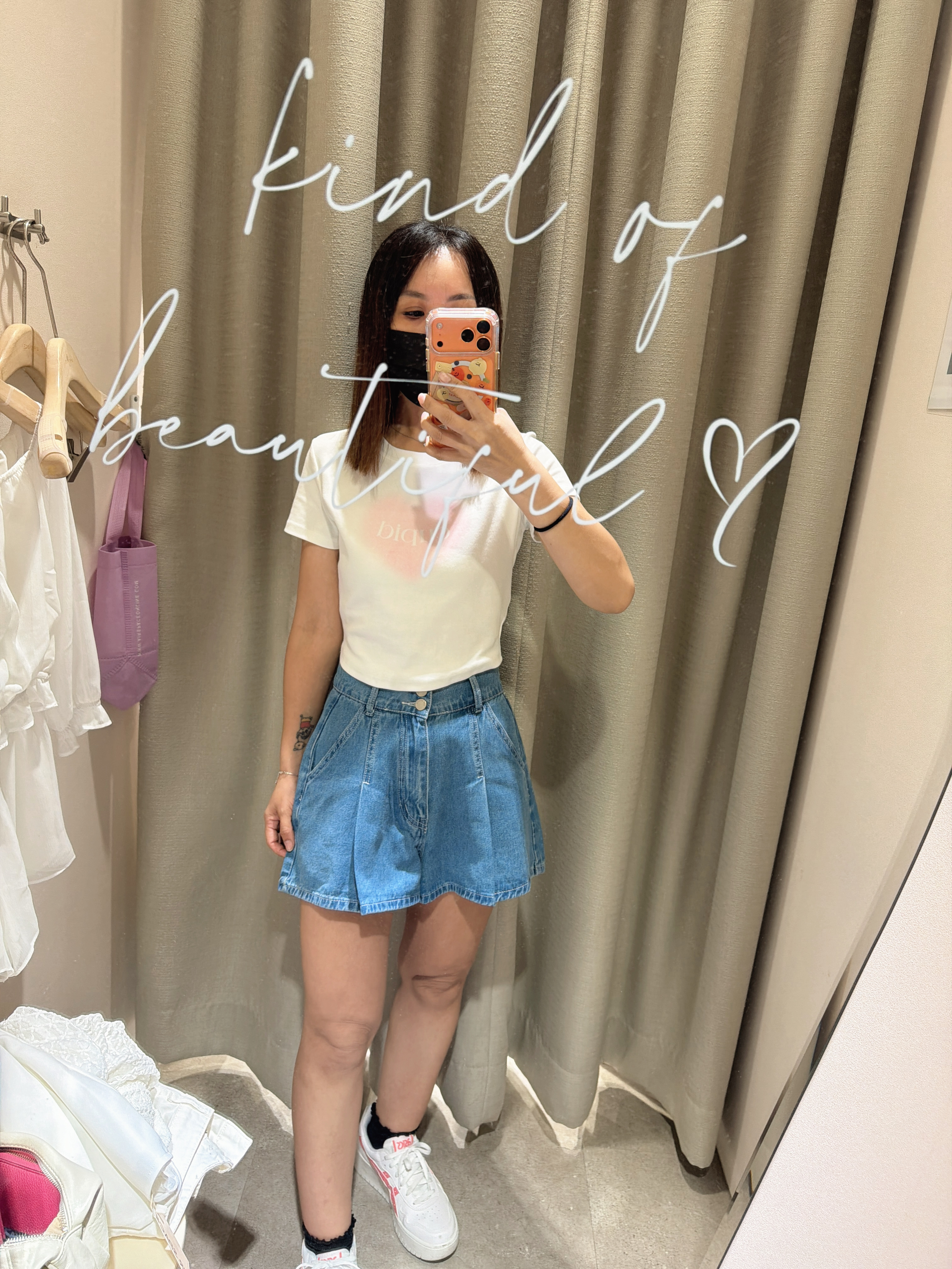 俐落的短版剪裁能在視覺上有效拉長下半身比例。噴漆塗鴉風的愛心字母印花為短TEE增添視覺亮點。搭配高腰牛仔褲或低腰短裙,即是時髦且具活力的日常甜感STYLE。