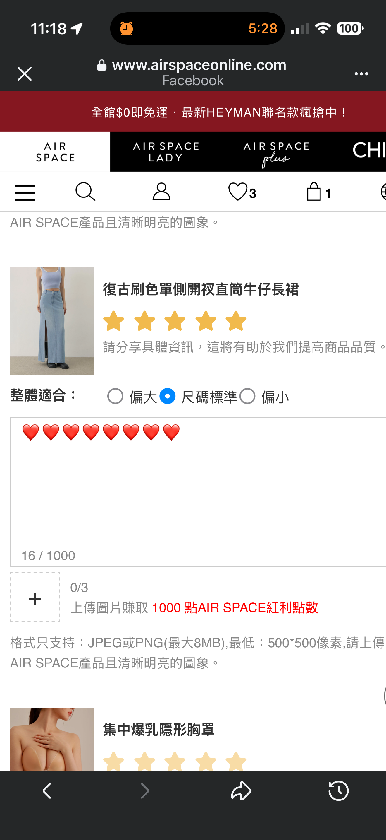 | 版型 | 貼身 | 1 | 2 | 3 | 4 | 5 | 寬鬆 |