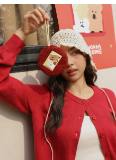 【DINOTAENG】羊羔毛圖案織標圓形零錢包