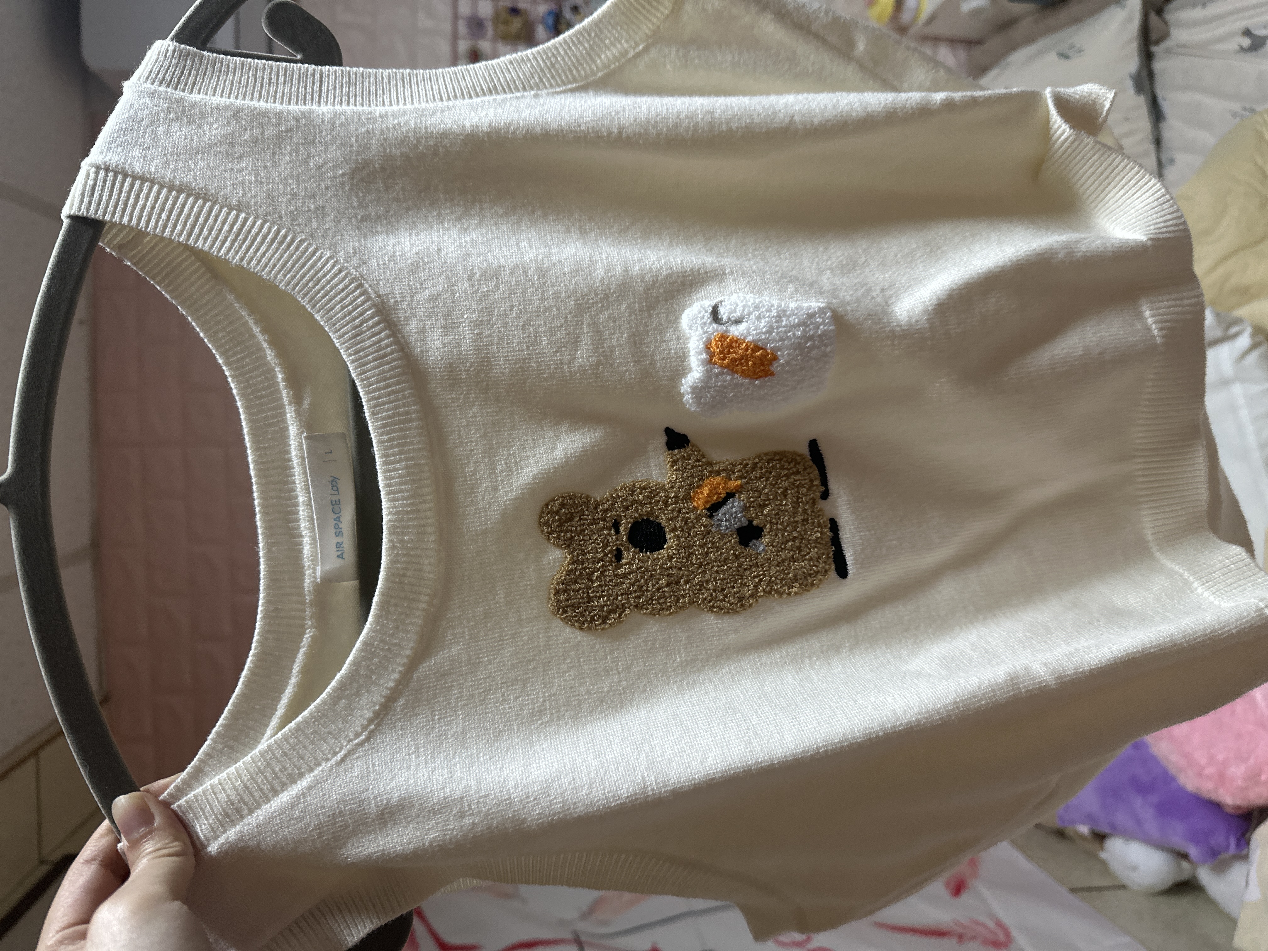【DINOTAENG】毛巾繡圖案圓領針織背心