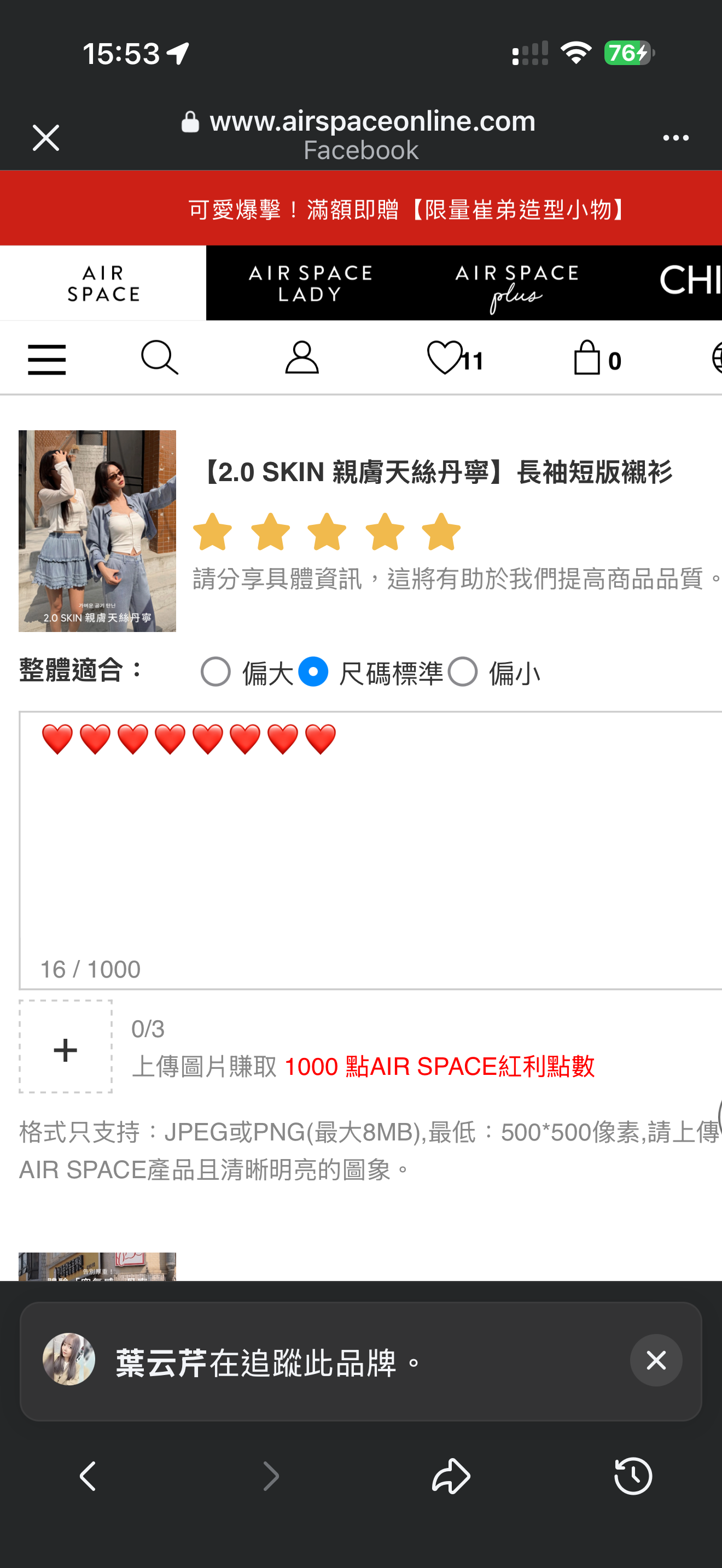 | 版型 | 貼身 | 1 | 2 | 3 | 4 | 5 | 寬鬆 |