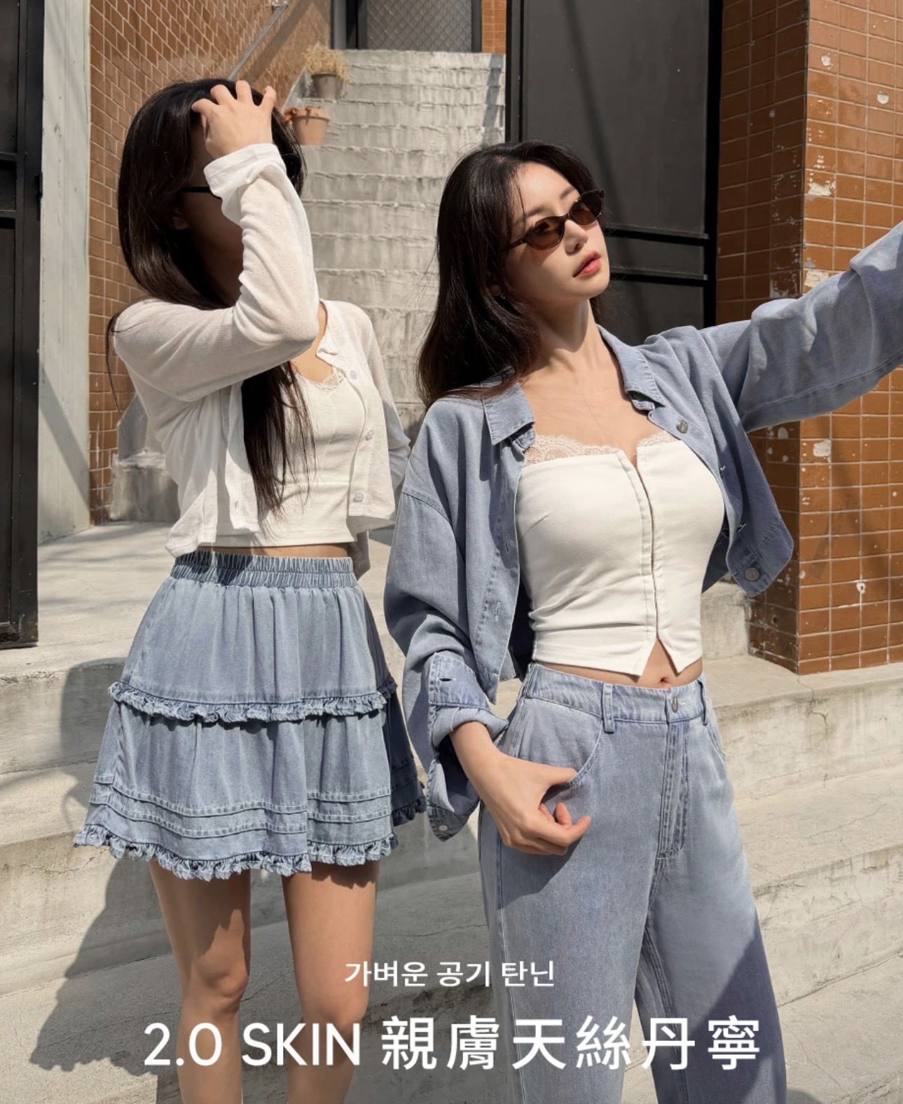 天絲牛仔系列,透氣性佳、觸感親膚細緻,有別於傳統丹寧的厚重。無論是襯衫、蛋糕短裙、打摺直筒褲或背心洋裝,皆能穿出輕盈顯瘦的效果。