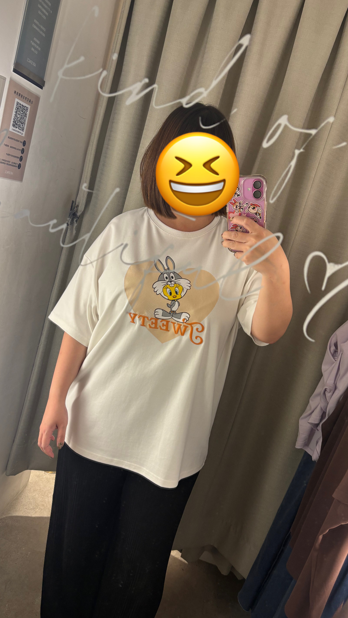 【樂一通】 印花刺繡字母短袖寬版TEE