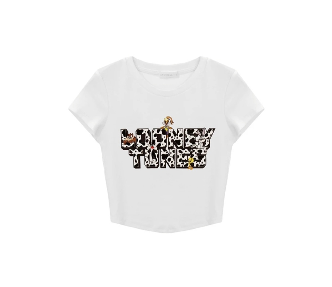 【樂一通】 乳牛斑紋字母印花圓領短袖短版合身TEE