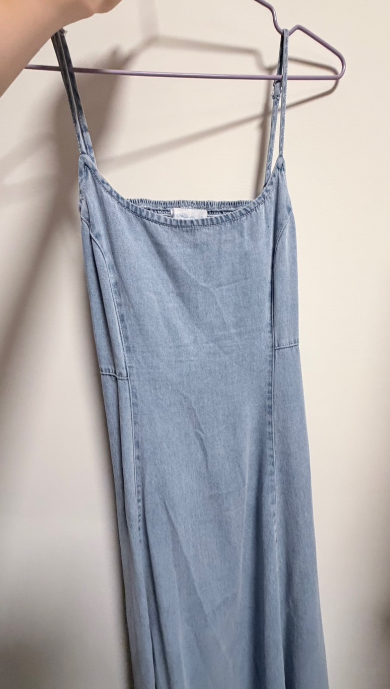 【2.0 SKIN 親膚天絲丹寧】細肩帶收腰長洋裝